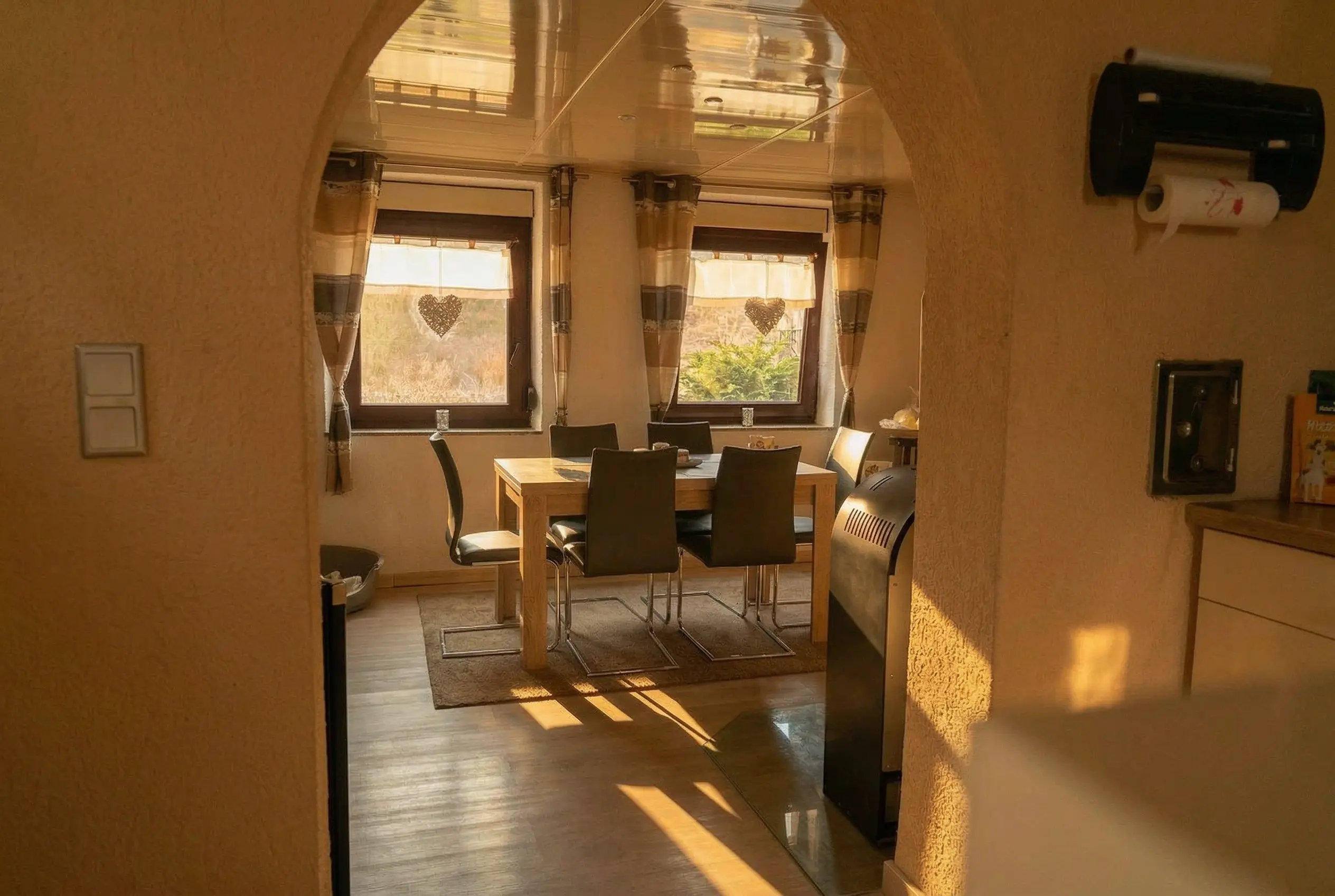 Das Erdgeschoss wurde im Jahr 2015 renoviert und umfasst ein Esszimmer, eine Küche, ein Badezimmer mit Badewanne sowie einen Hauswirtschaftsraum. Von hier aus gelangen Sie direkt auf die Terrasse und in den Garten.