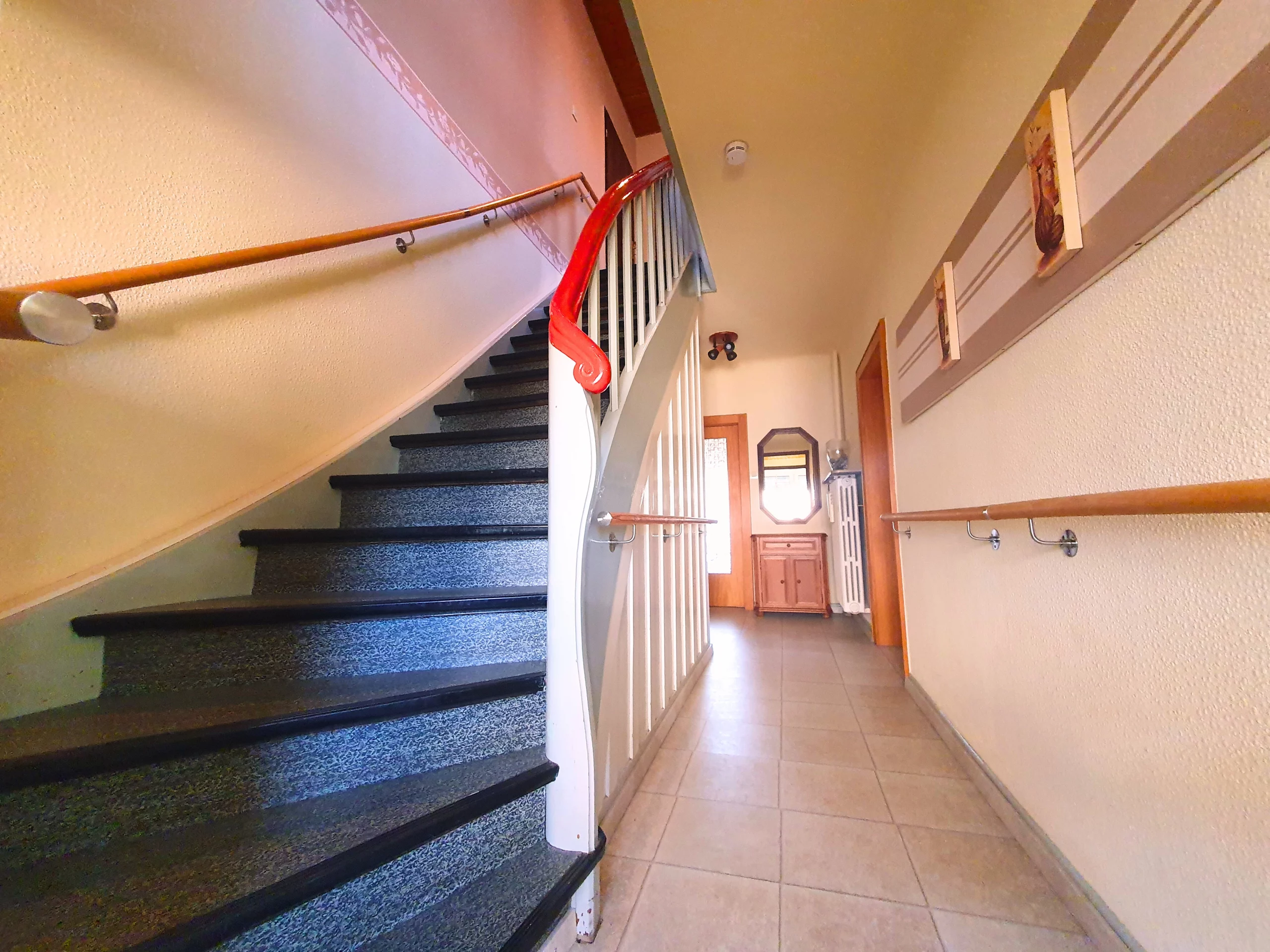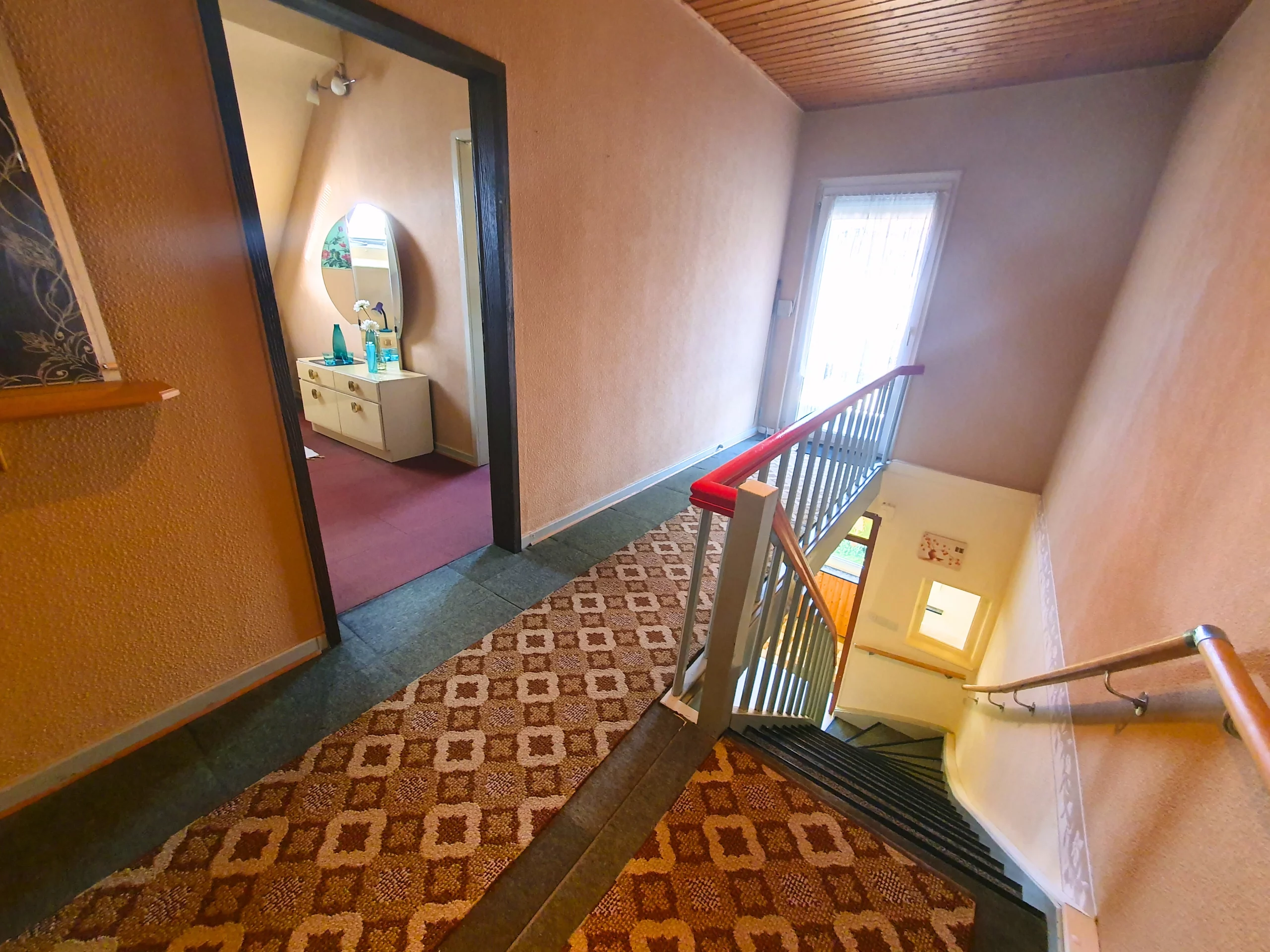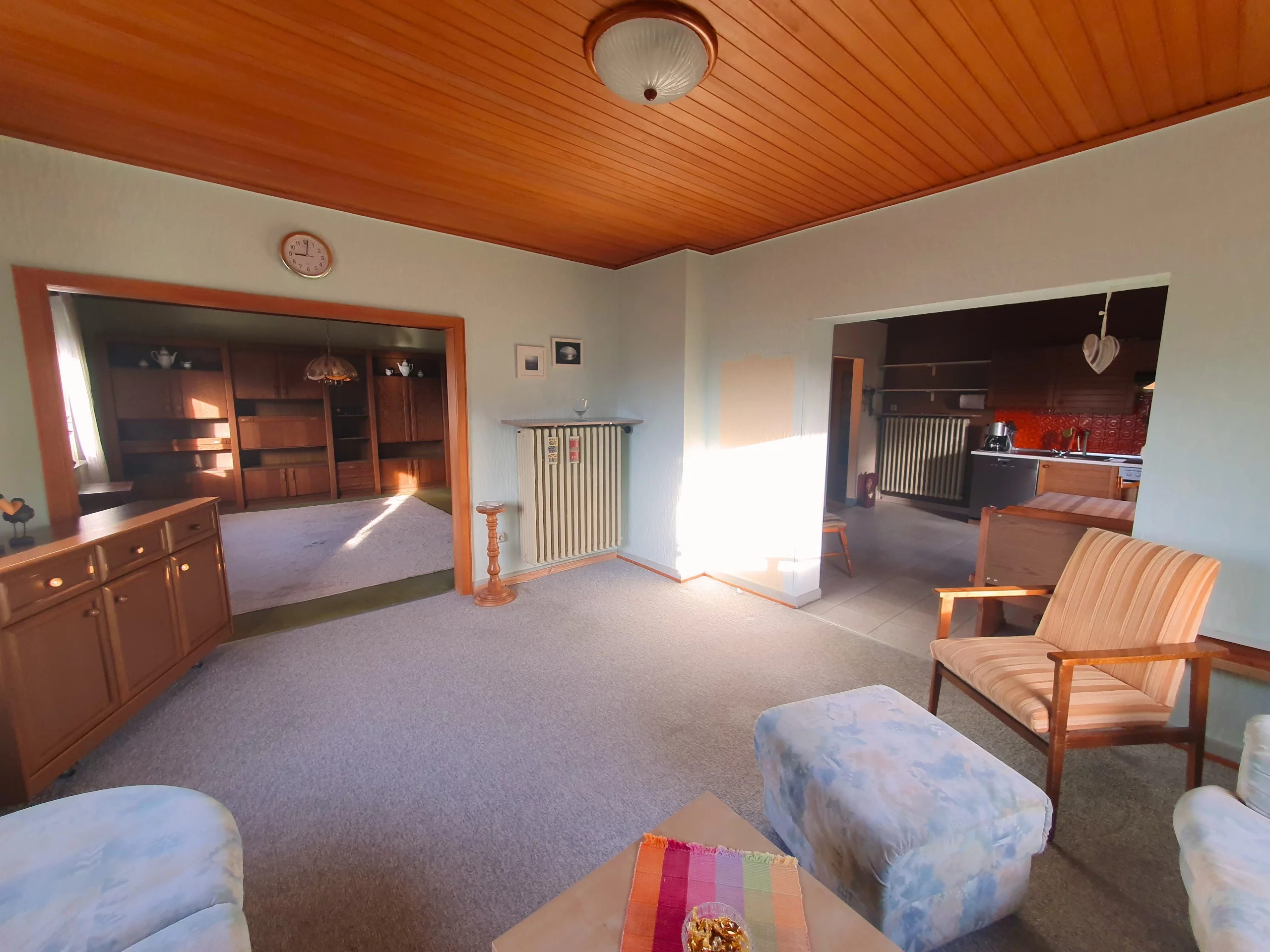 Das Haus ist unterkellert und wurde fortlaufend instandgehalten. Im Erdgeschoss befindet sich ein offener Wohn- und Essbereich mit direktem Zugang zur Küche. Großzügige Fensterflächen sorgen für viel Tageslicht. Zudem gibt es auf dieser Etage ein Schlafzimmer, ein Duschbad, ein separates Gäste-WC und einen Vorratsraum. Im Dachgeschoss stehen vier weitere Zimmer, eine kleine Küchenzeile sowie ein Duschbad zur Verfügung. Ideal für Kinder oder als separate Einheit. Im Kellergeschoss befindet sich neben den üblichen Kellerräumen ein gemütlicher Saunaraum mit Dusche – ein besonderes Extra für entspannte Stunden im eigenen Zuhause.