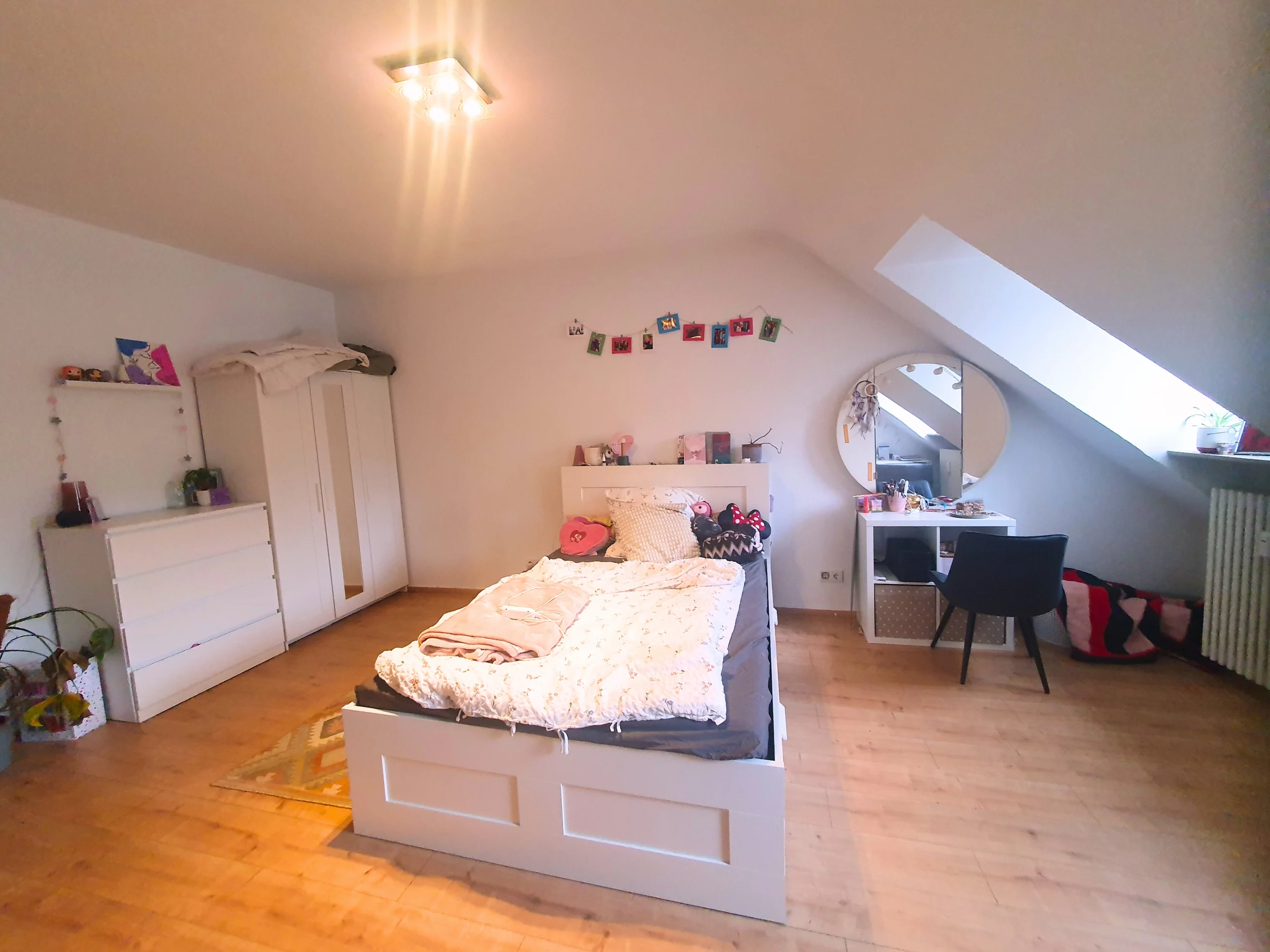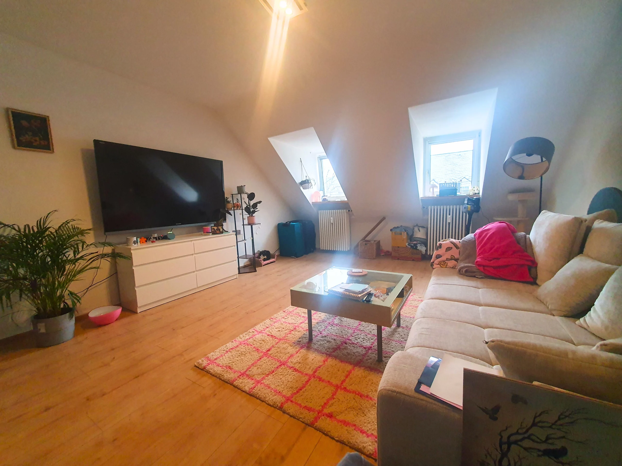 Die Wohnung überzeugt durch ihre großzügige Raumwirkung, helle Fensterflächen und die typische Dachgeschossatmosphäre mit angenehmen Schrägen. Der Wohn und Essbereich bietet viel Platz für individuelle Einrichtungsmöglichkeiten und schafft eine offene, freundliche Wohnsituation.